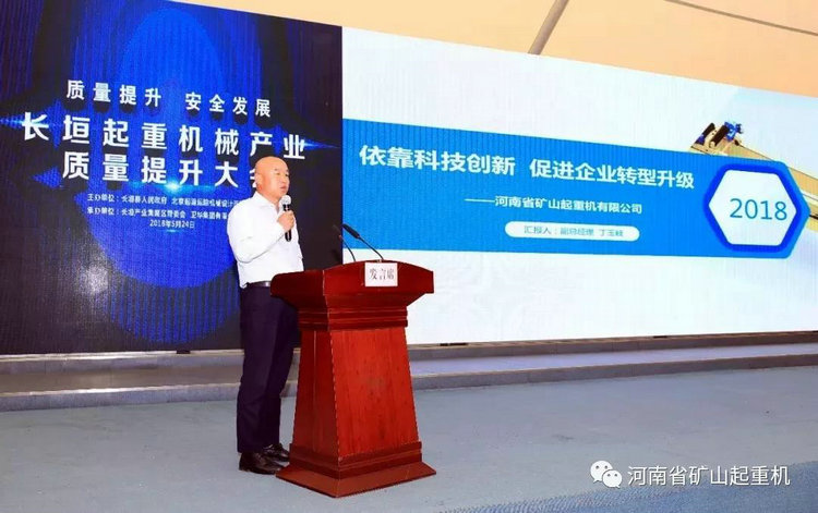 公司質(zhì)量副總丁玉岐在起重機(jī)械產(chǎn)業(yè)質(zhì)量提升大會(huì)上做專題發(fā)言