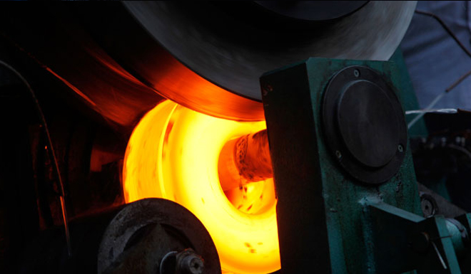 (2)鍛壓、碾壓復(fù)合成型工藝生產(chǎn)的車(chē)輪產(chǎn)品輪孔和輪槽是在壓力作用下碾壓成型的,原材料受到充分利用。與傳統(tǒng)的鍛壓成型工藝比較明顯的降低了原材料消耗,有利于降低成本,提高產(chǎn)品市場(chǎng)競(jìng)爭(zhēng)力;