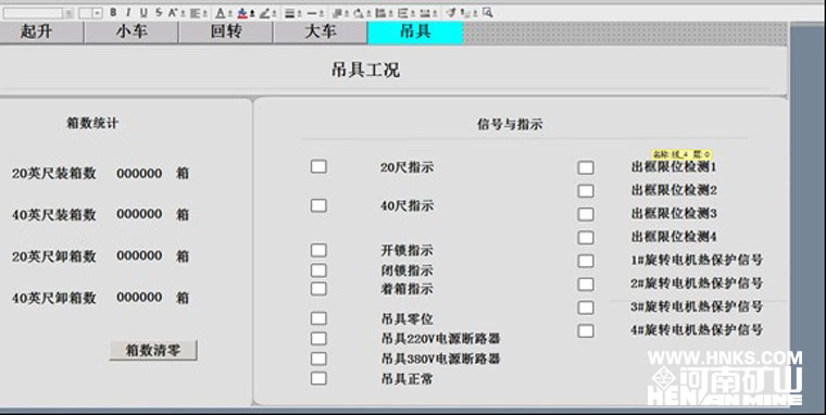 另外該起重機(jī)采用了先進(jìn)的自動控制系統(tǒng),實(shí)現(xiàn)了無人化操作功能,如自動尋箱、自動定位、遠(yuǎn)程監(jiān)控、數(shù)據(jù)實(shí)時傳輸?shù)?。起重機(jī)還配備有專用“黑匣子”,對各個部位故障快速診斷,能以直觀的方式讓操作者了解起重機(jī)的“健康情況”。為客戶管理貨場提供了解決方案和人性化的操作體驗,在幫助屏幕上附帶了一個專家系統(tǒng),使得整機(jī)反饋能縮小到具體的元件、聯(lián)鎖裝置及開關(guān),并為這一系列數(shù)據(jù)建立了一個數(shù)據(jù)庫,為解決問題提供幫助。