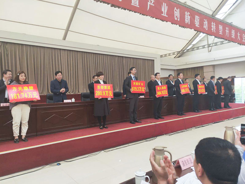河南礦山榮獲長垣縣起重行業(yè)納稅大戶及創(chuàng)新驅(qū)動轉(zhuǎn)型發(fā)展先進(jìn)單位,公司總經(jīng)理任海濤等領(lǐng)導(dǎo)參加表彰大會。